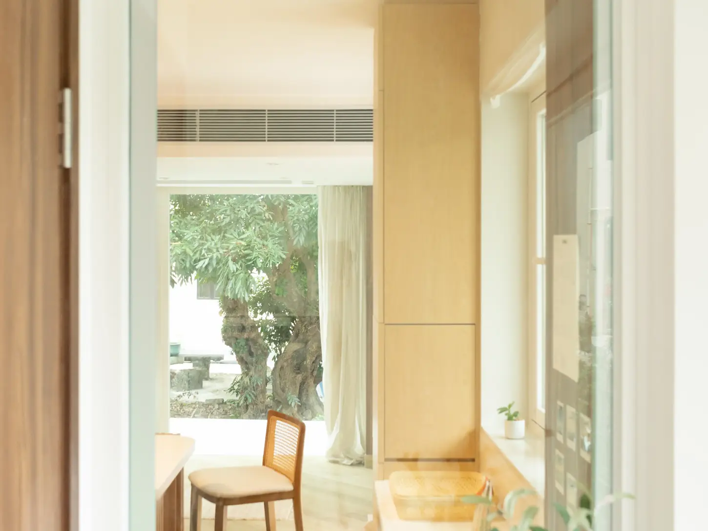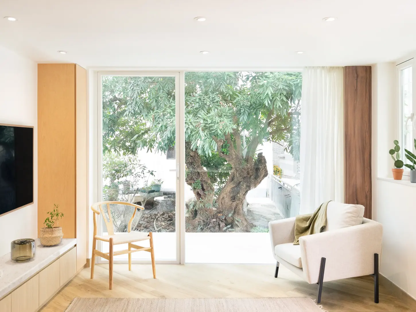 The design centred around a LongAn Tree which is over 100 years old, planted before the client’s mother’s birth. It has great sentimental value to the client, and therefore we have placed a large window in the living room to frame this view of the LongAn Tree. By bringing in more and larger windows, we made the refurbished house brighter and broke away from the traditional dark interior brought by small windows.